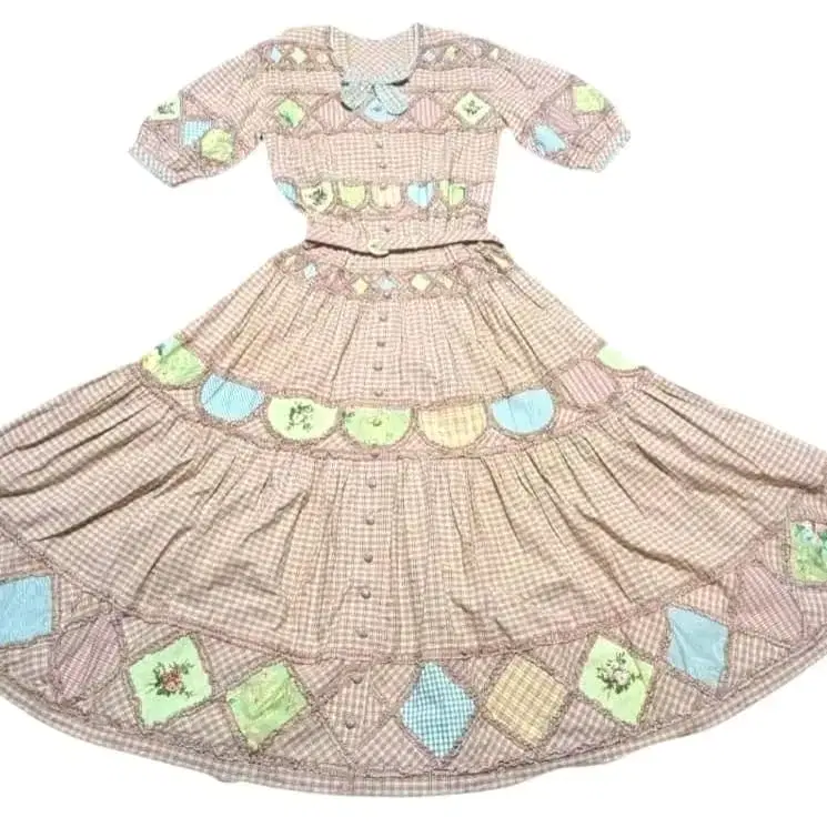 체크 무늬 패치워크 원피스