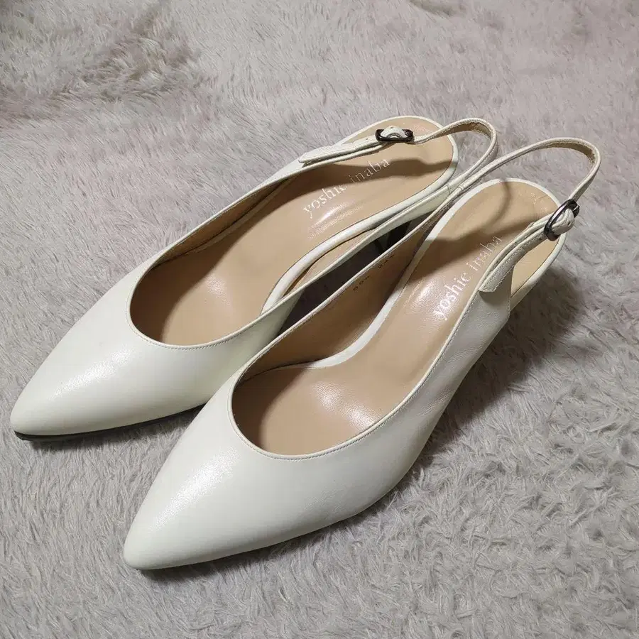 이나바 요시에 화이트 백 스트랩 펌프스