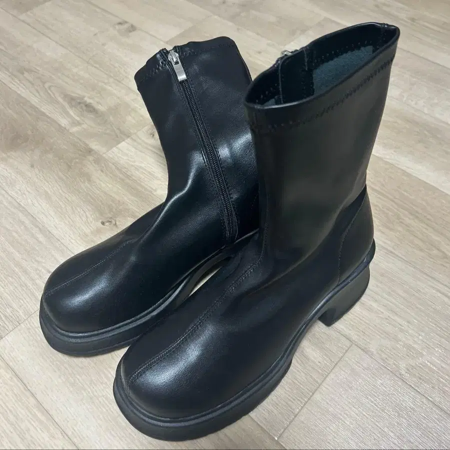 VIVIAN 볼륨 앞코 통굽 스트레치 미들 부츠