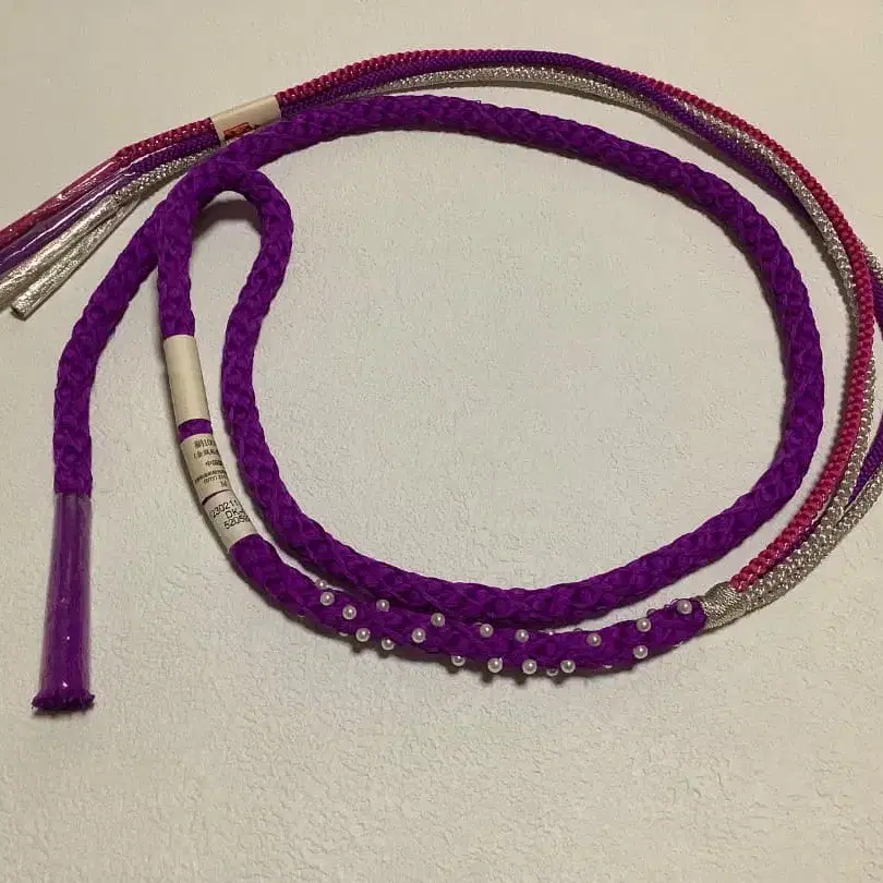 후리소데용 순수 실크 허리띠입니다. 사이즈: M 사이즈 (길이: 약 178cm, 폭: 최대 약 2.3cm, 지름 약 10mm) 소재: 실크 100% (금속사 사용) 방문해 주셔서 감사합니다.