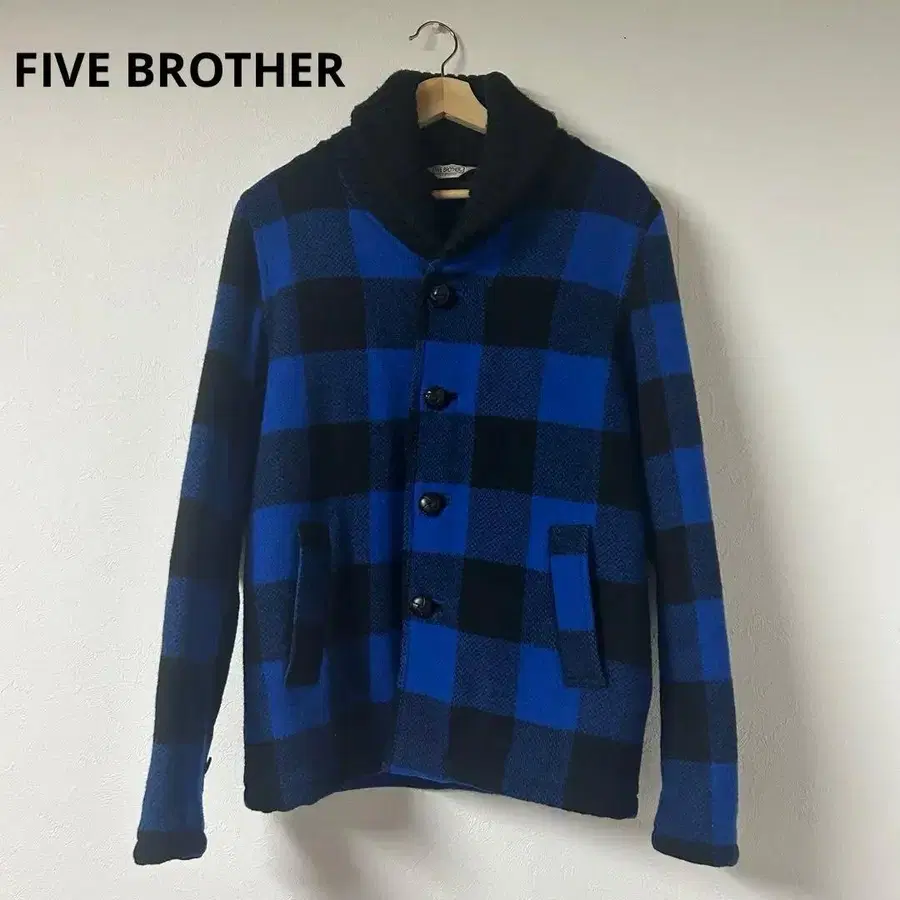 파이브 브라더 버팔로 체크 충전솜 울 자켓 블루