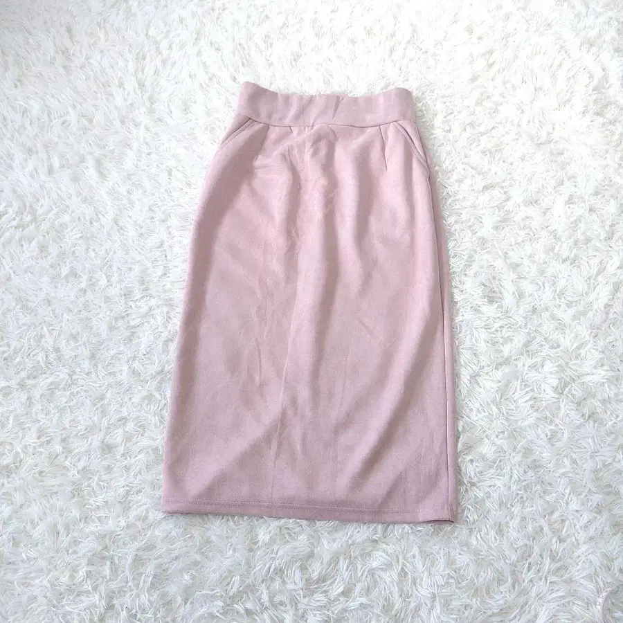 스웨이드 느낌 타이트 롱 스커트 L 허리밴딩 슬릿 있음 핑크