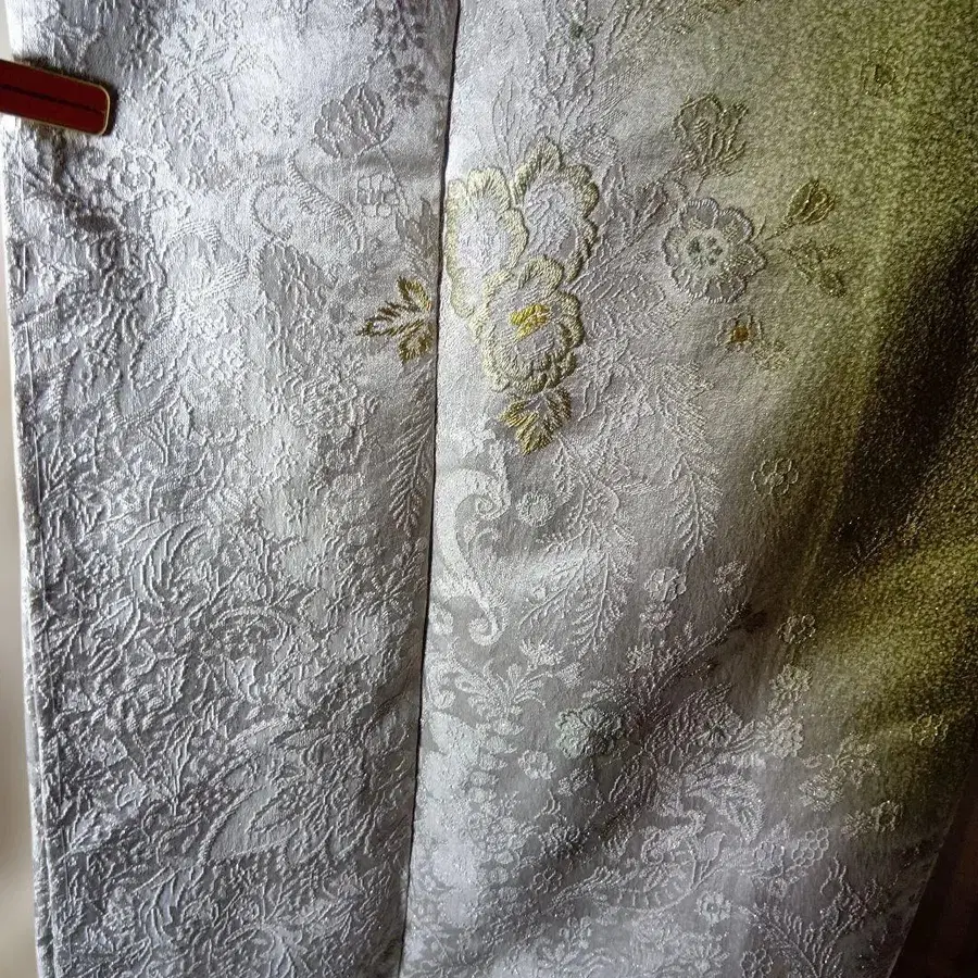 라메 입은 지츠케아게 기모노 옅은 그레이 꽃무늬