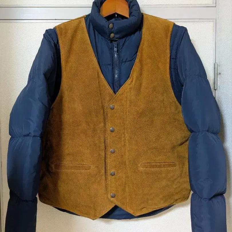 Schott Down 다운 자켓 베스트 42 브라운 네이비