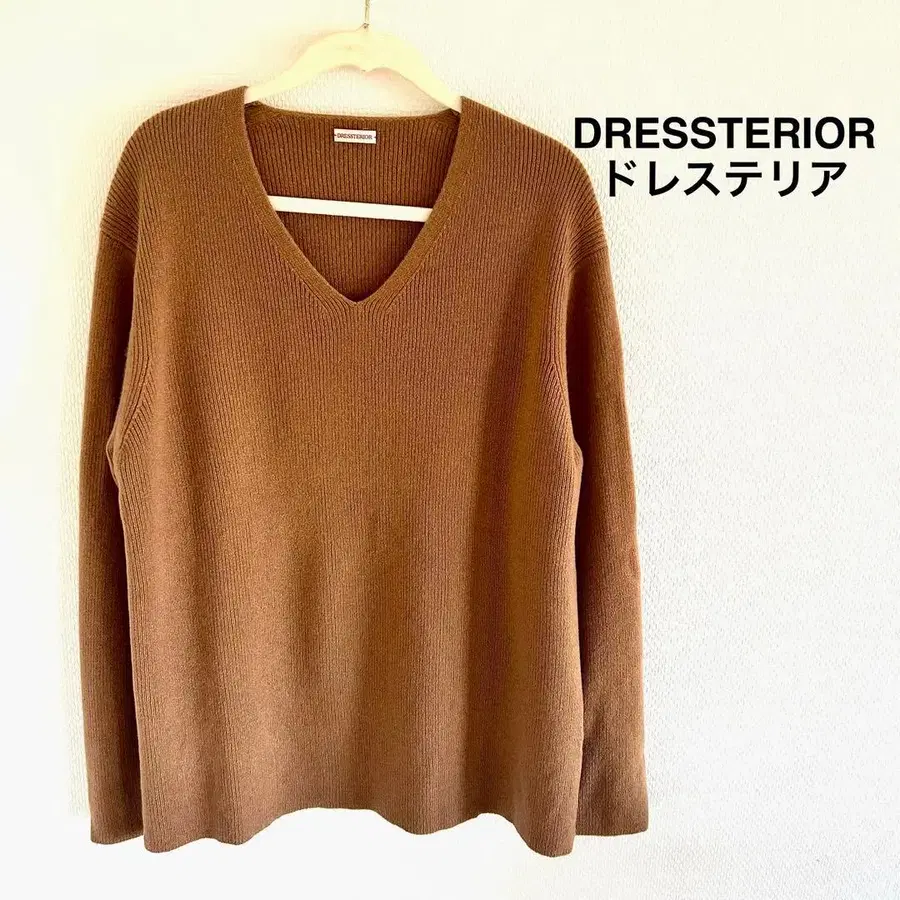 드레 스테리아 니트 카멜 브라운 계열 V넥 스웨터 양모