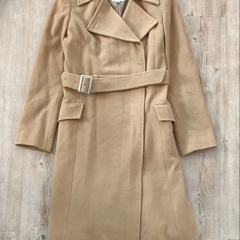 MICHEL KLEIN 울 혼방 벨트 카멜 롱 코트 40