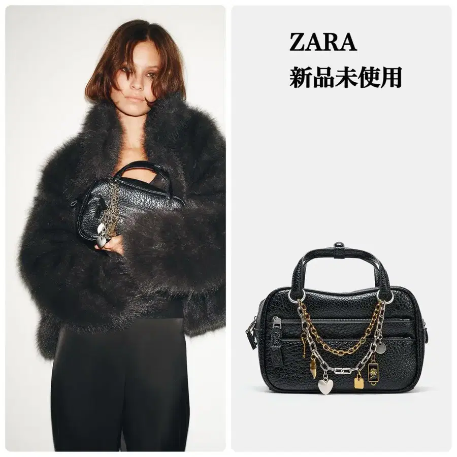 완판템 ZARA 참 디테일 블랙 백 택 포함 새상품