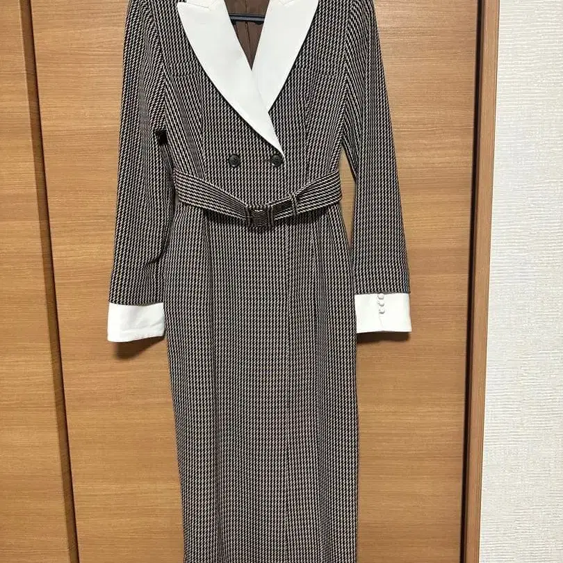 체크 무늬 더블 브레스트 원피스