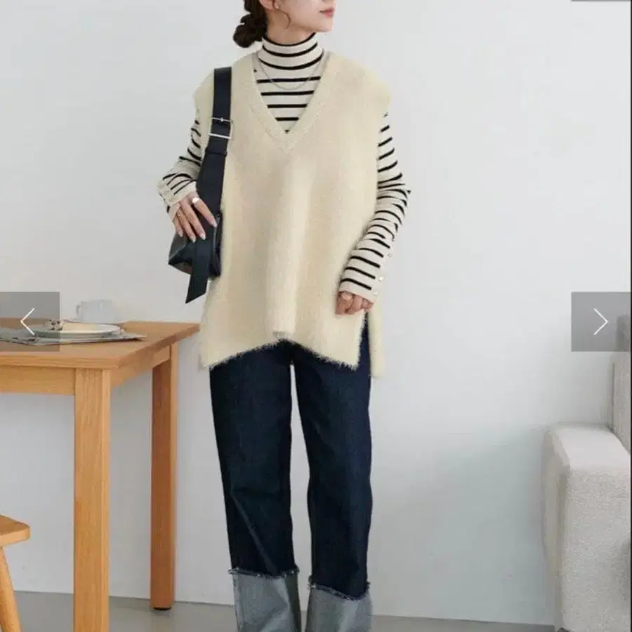 DISCOAT 페더 얀 튜닉 베스트 아이보리
