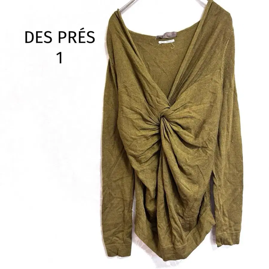 데프레 니트 티셔츠 프론트 트위스트 V넥 카키 계열 성인 고급 긴팔