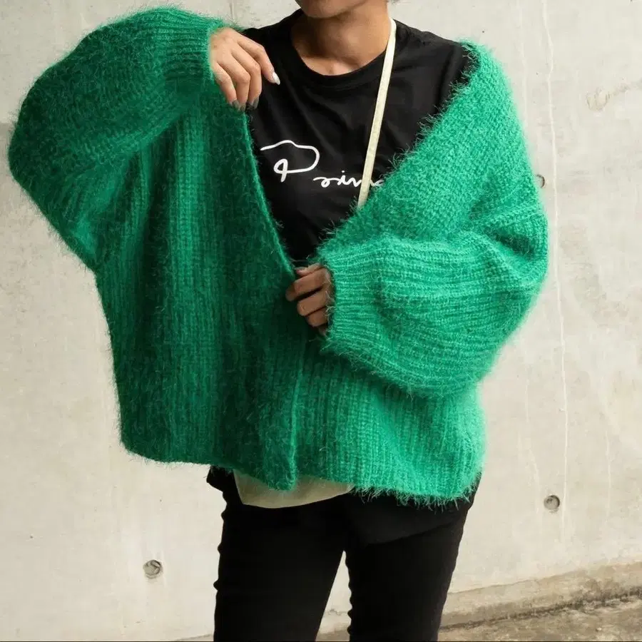 미사용*플리마켓 볼륨 샤기 모헤어 니트 가디건
