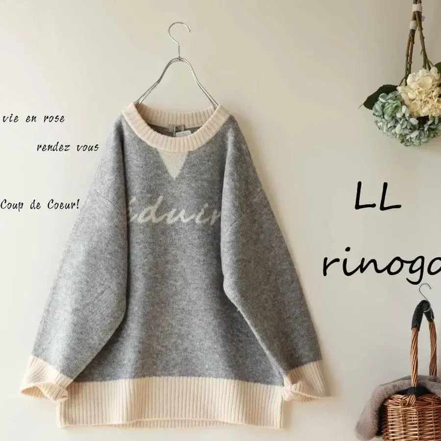 새상품 할인 LL 그레이*로고 맨투맨 디자인 니트 스웨터 빅 사이즈