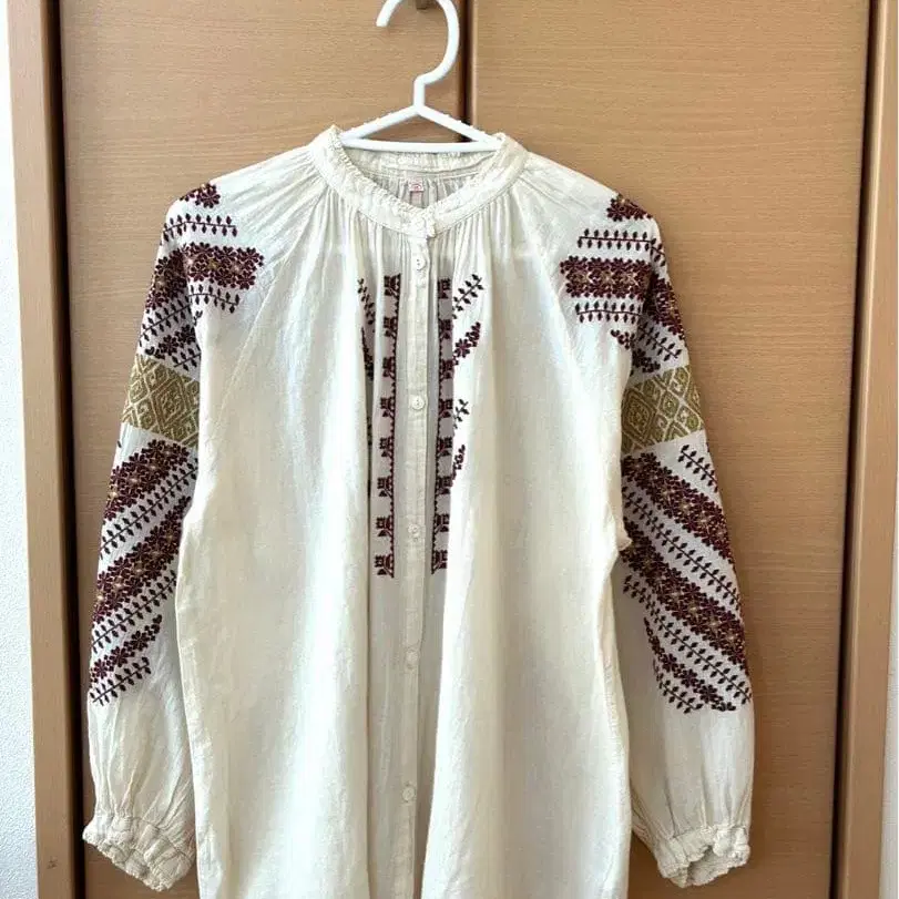데님앤던거리 아이보리 자수 긴팔 셔츠 사이즈 2