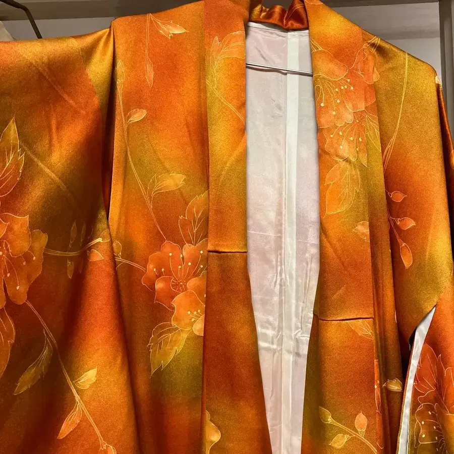 오렌지 계열 꽃무늬 코몬 기모노