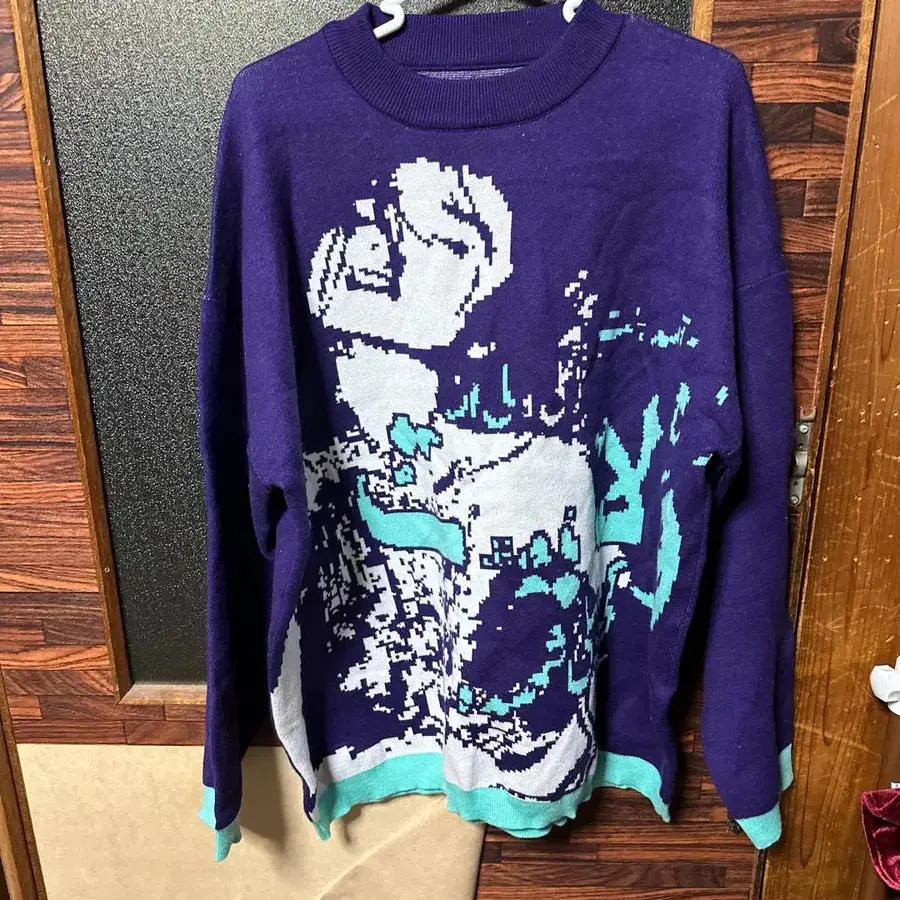 Ninety-nine 보라색 그래픽 니트 M