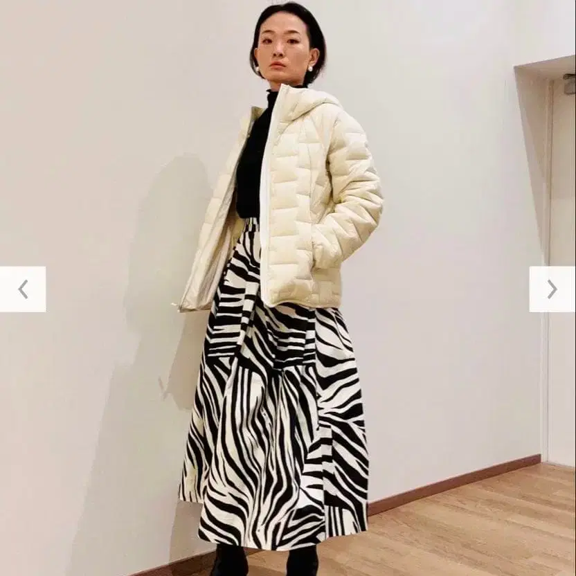 PLST 제브라 패턴 볼륨 턱 플레어 스커트