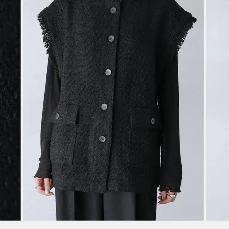 새상품 ESICA 트위드 베스트 프린지 베스트 블랙