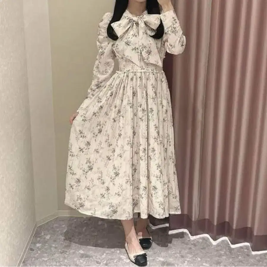 안미르 롱 원피스 꽃무늬 화이트 긴팔 스나계 양산형