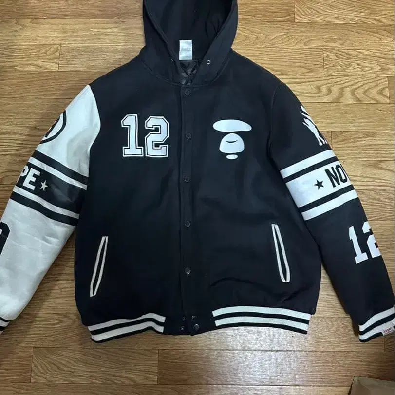 Aape 후드 부착 바시티 자켓 XXL 블랙/화이트