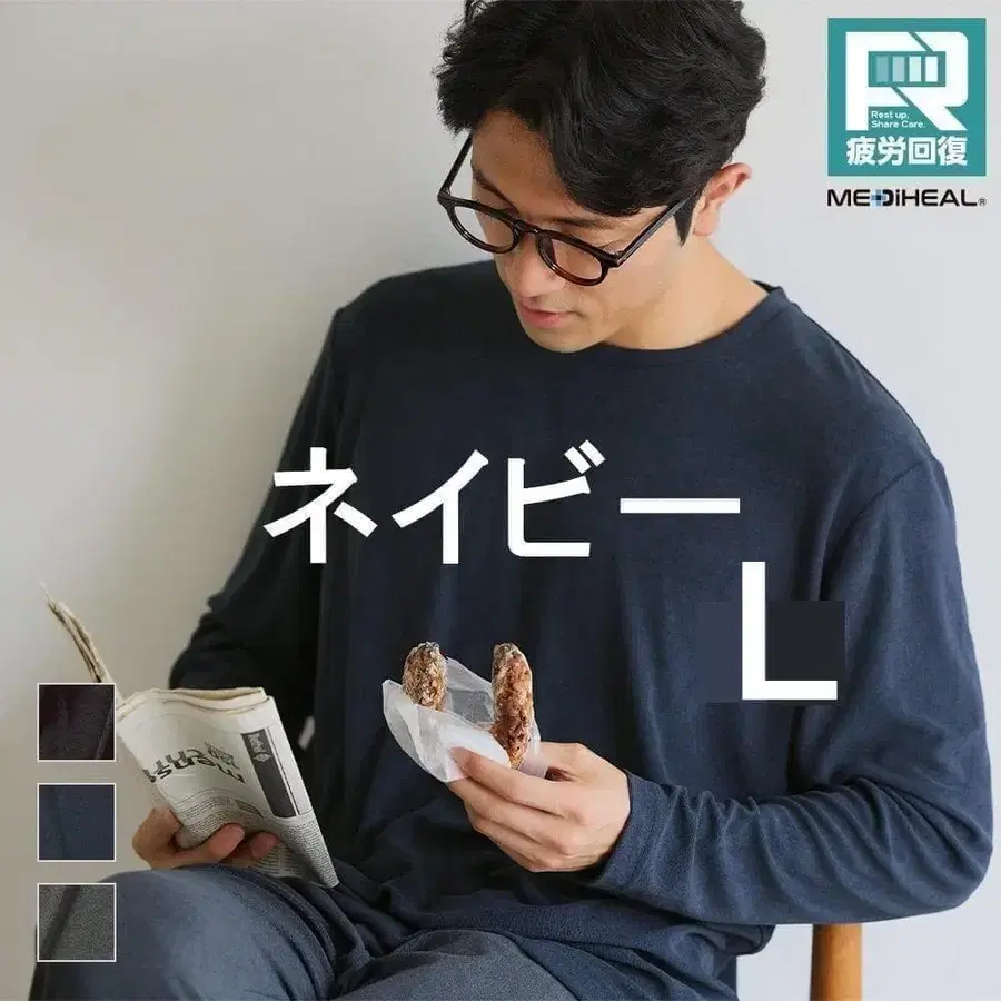 자동 번역되었어요. 원문보기워크맨 메디힐 룸웨어 리커버리웨어 룸 파일 긴팔 크루넥 새상품 L 네이비