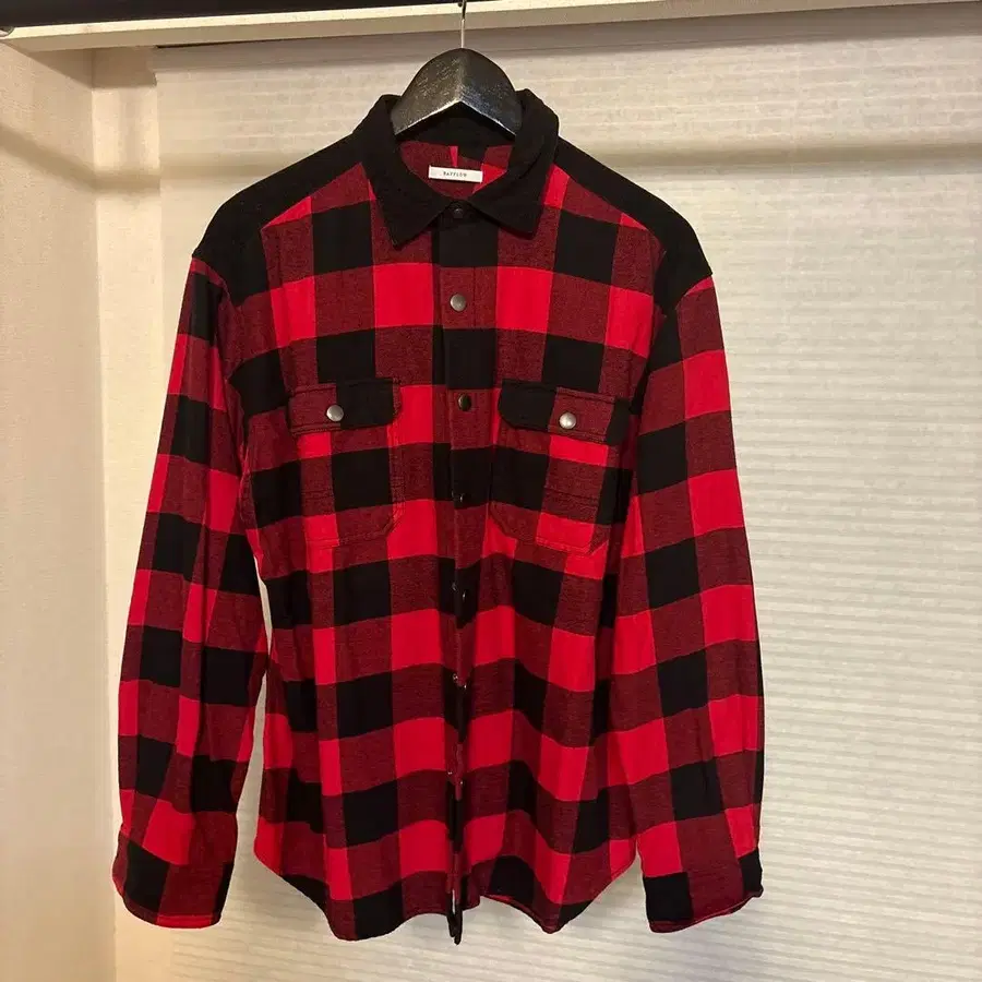 베이플로우 빨간색과 블랙 체크 플란넬 셔츠