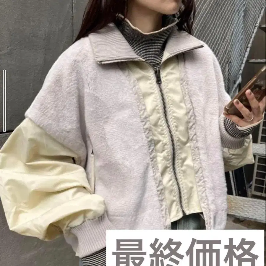 [ etsinta ] 퍼 절개 숏 스탠드 자켓 아이보리