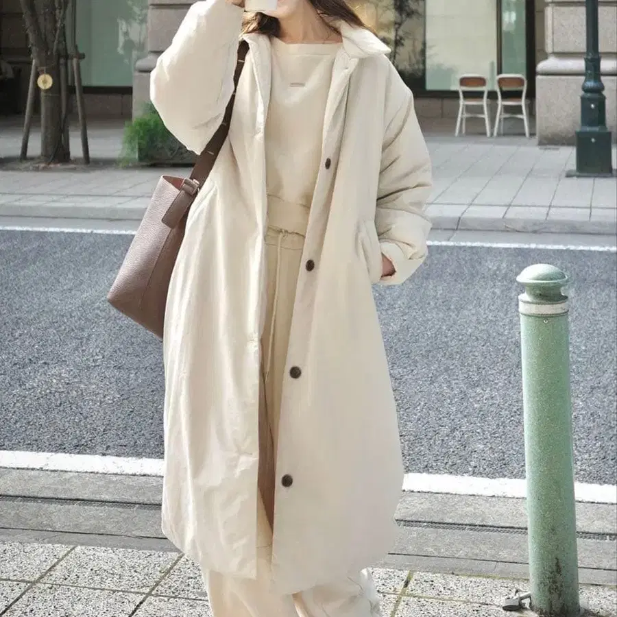 marina x classicalelf 콜라보 카라 부착 충전솜 롱 코트