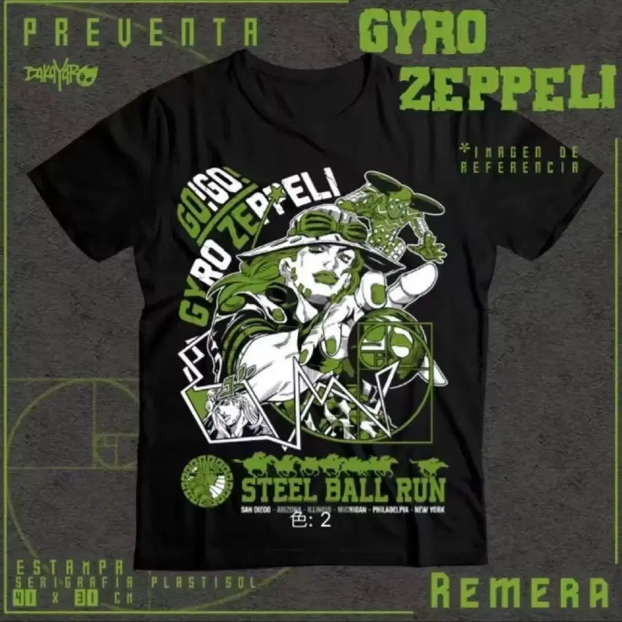 스틸 볼 런 자이로 체펠리 T셔츠 XxL 죠죠