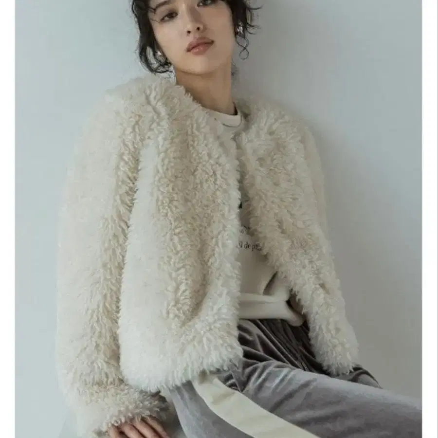 Re:EDIT 티베트 라이크 인조 모피 숏 기장 노카라 자켓