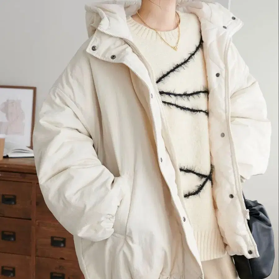 DISCOAT 디스코트 충전솜 몬스터 후드티 아이보리 블루종