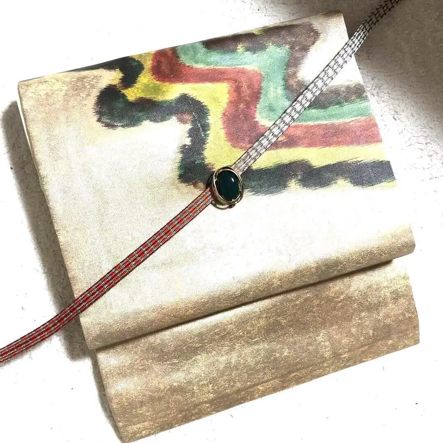 순수 실크 나고야 오비, 골드에 컬러풀한 흐르는 강 같은 무늬