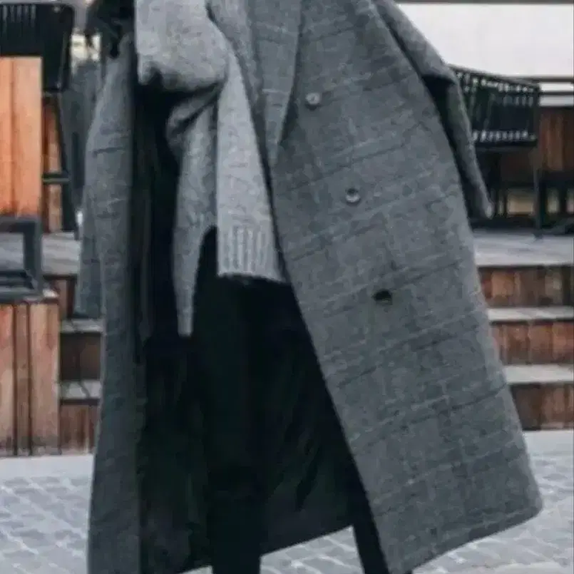 그레이 체크 무늬 더블 브레스트 롱 코트 택 포함 새상품