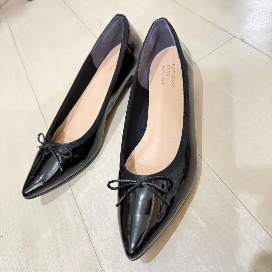 새상품급 SEPTEMBER MOON 블랙 플랫 페이턴트 에나멜 25.5