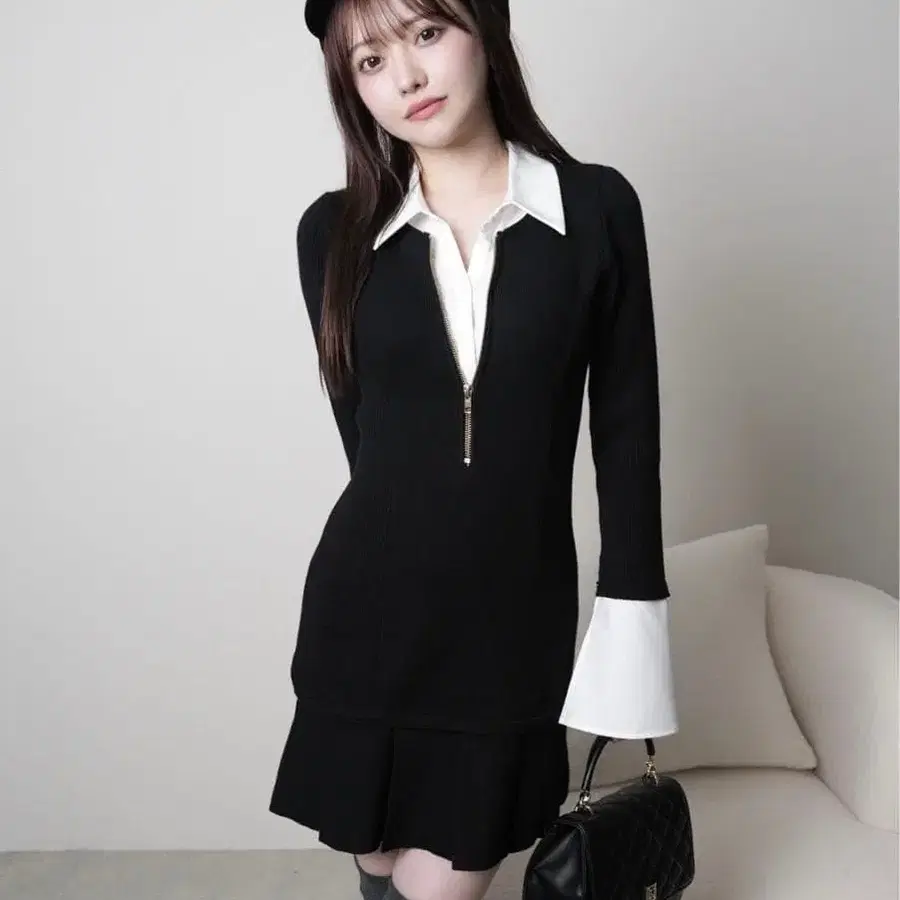 프론트 ZIP 니트 플리츠 원피스 lip service 립 서비스