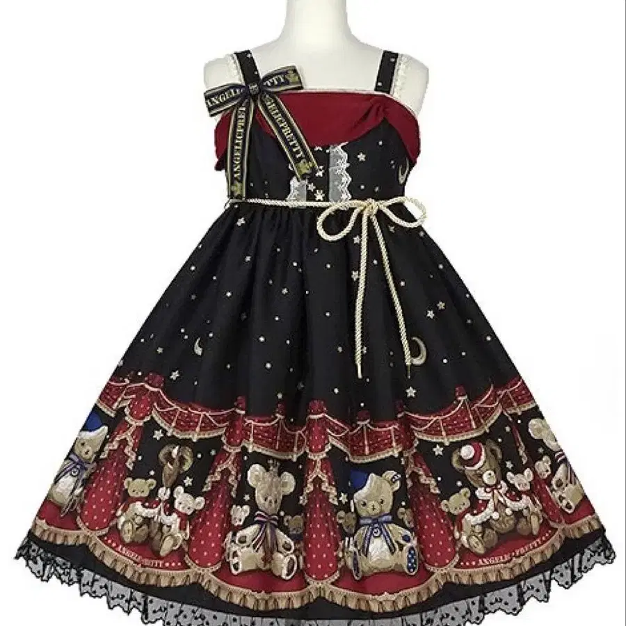 Dream Bear 오버롤 스커트 블랙 크리스마스 테디베어