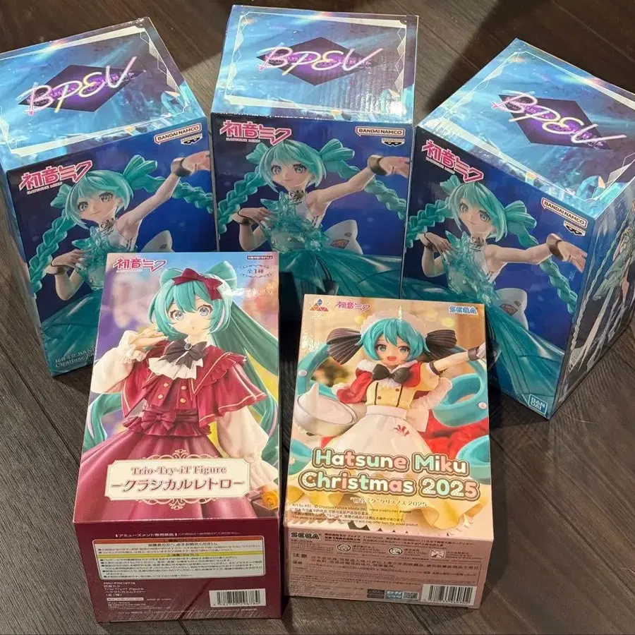 상품 설명을 방문해 주셔서 감사합니다. 번거로우시겠지만 프로필을 읽어 주시기를 부탁드립니다. 상품 설명 하츠네 미쿠 피규어 5개 세트 - 시리즈명: 하츠네 미쿠 BANPRESTO EVOLVE Clearluxe-EmeraldGem- 3개 - 시리즈명: Trio-Try-iT Figure -클래시컬 레트로- - 시리즈명: 하츠네 미쿠 Christmas 2025 이 상품은 인형뽑기 경품이므로, 암의 흠집이나 스크래치, 찍힘, 모서리 찌그러짐, 약간의 찢어짐 등이 있을 수 있으니 이해하신 후 구매 부탁드립니다. 미개봉이므로 상품의 초기 불량은 구매자님께서 제조사에 문의 부탁드립니다. 판매하는 상품은 미개봉 새상품이지만 개인 보관이므로 양해 부탁드립니다. 즉시 구매 가능합니다. 낱개 판매는 불가하오니 양해 부탁드립니다. 잘 부탁드립니다.