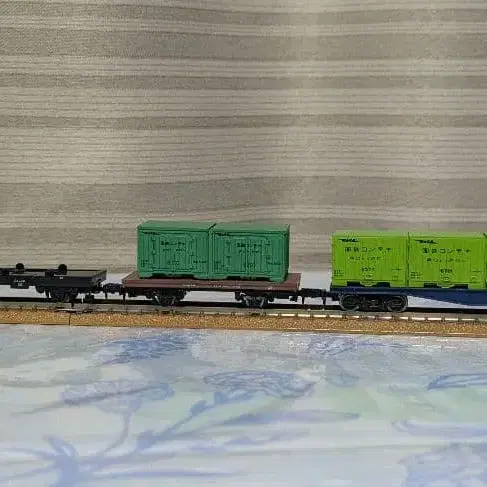 컨테이너 화물 열차와 화물 열차 N 게이지 4량 세트