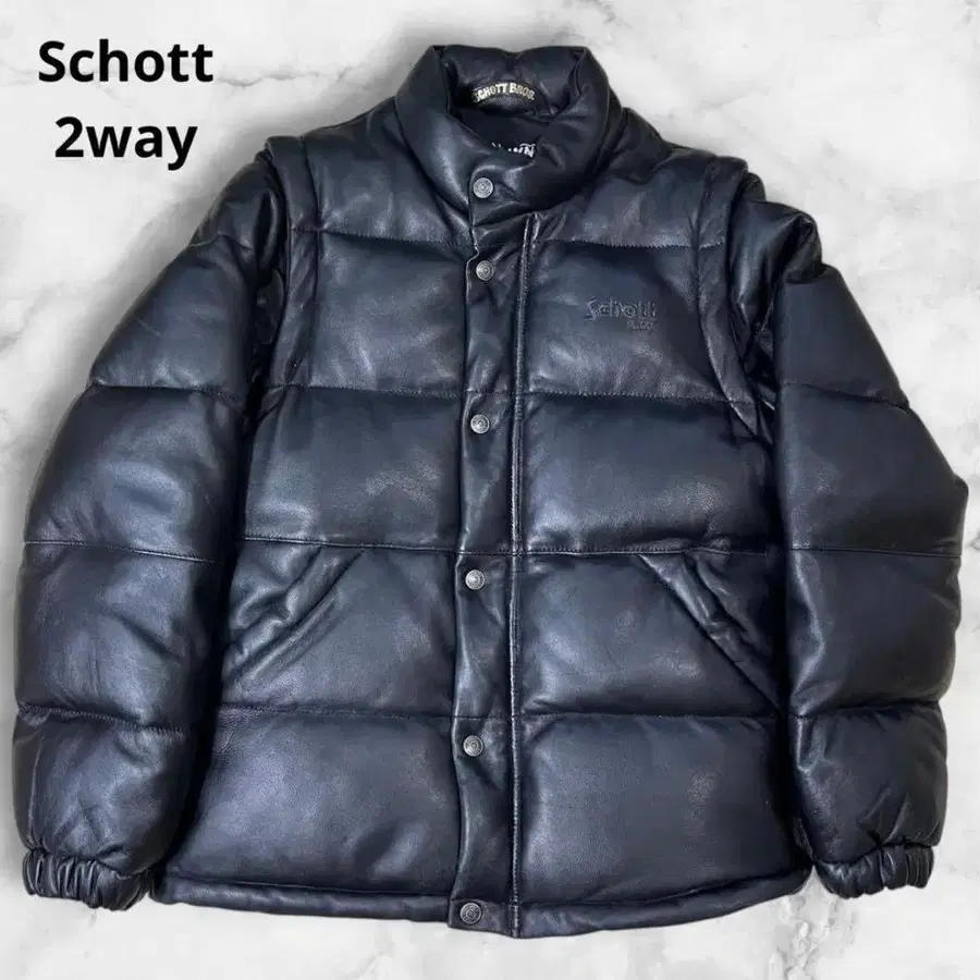 Schott ( 샷 ) / 가죽 다운 자켓 / 2way ( 소매 탈부착 가능 ) / 남성용 M / 램 가죽 / 새상품급