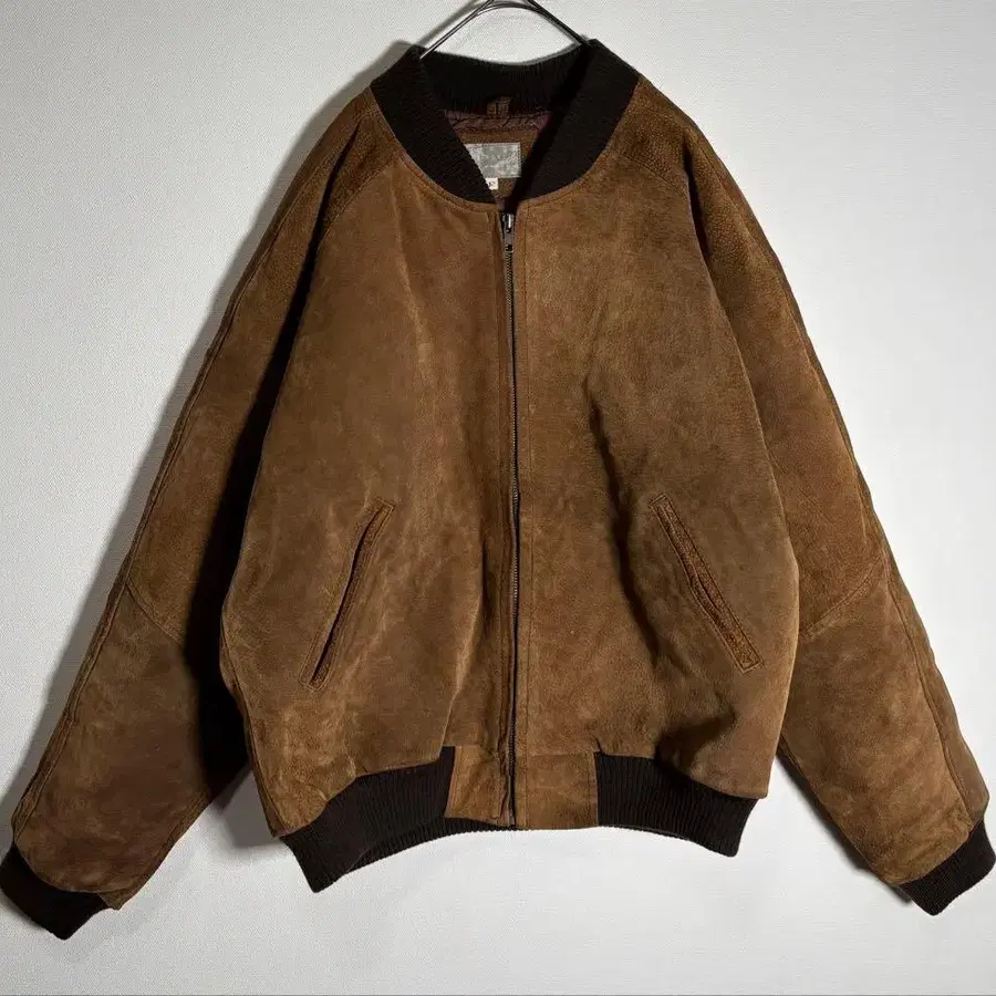 • 백 롯 빈티지 스웨이드 가죽 돈피 봄버 자켓 M