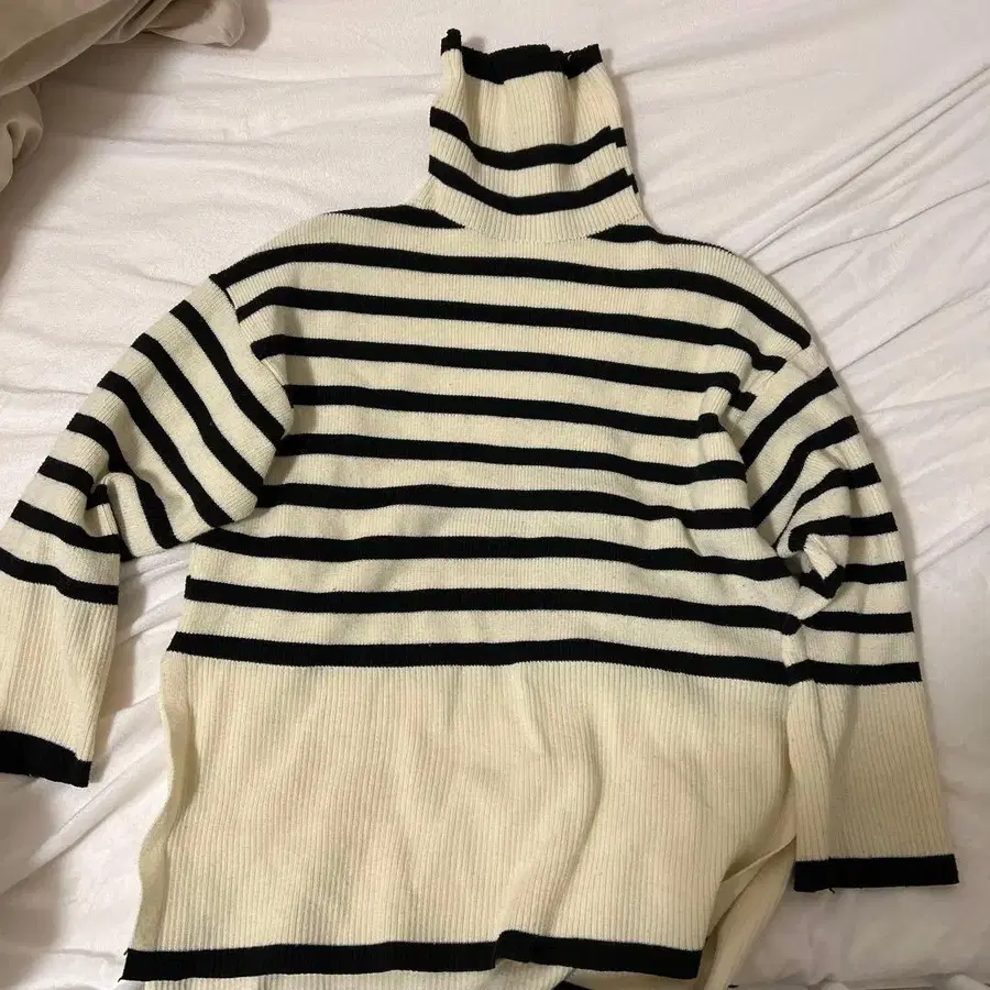 스트라이프 터틀넥 스웨터