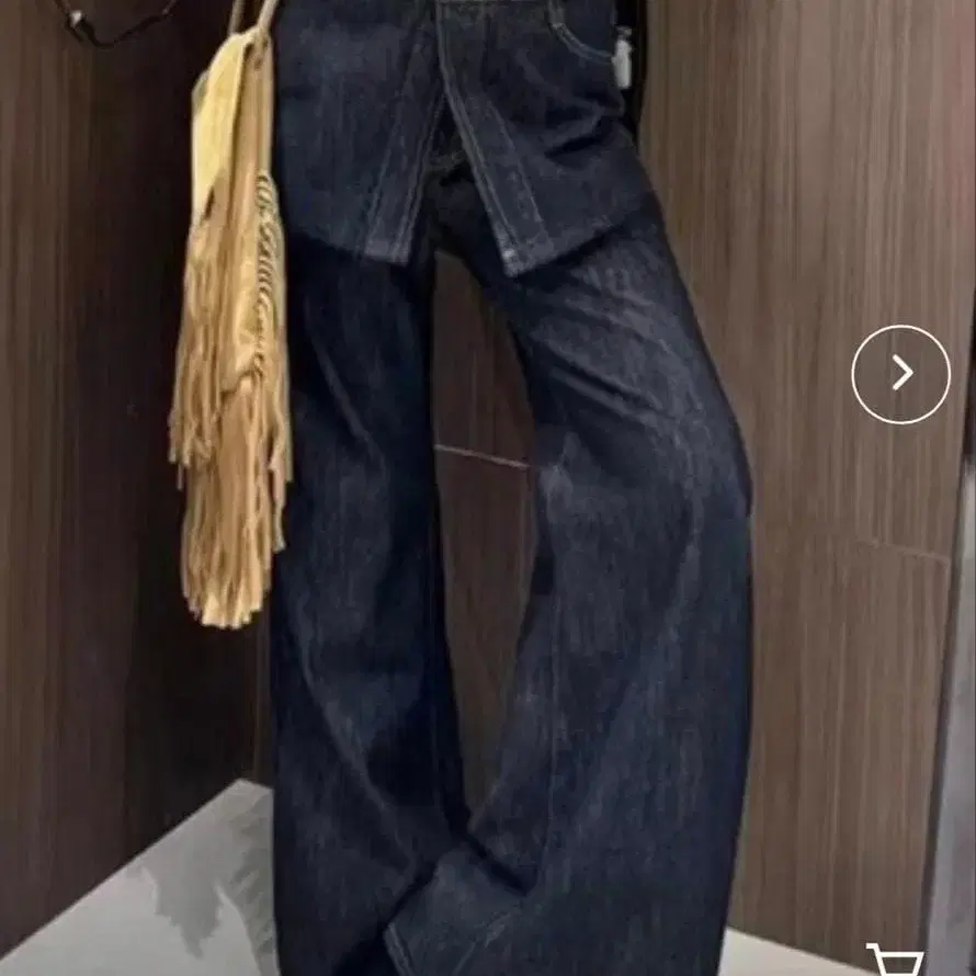 페이크 레이어드 와이드 스트레이트 데님 팬츠