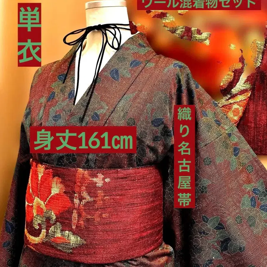 익명 배송 울 혼방 기모노 & 직조 나고야 오비 세트