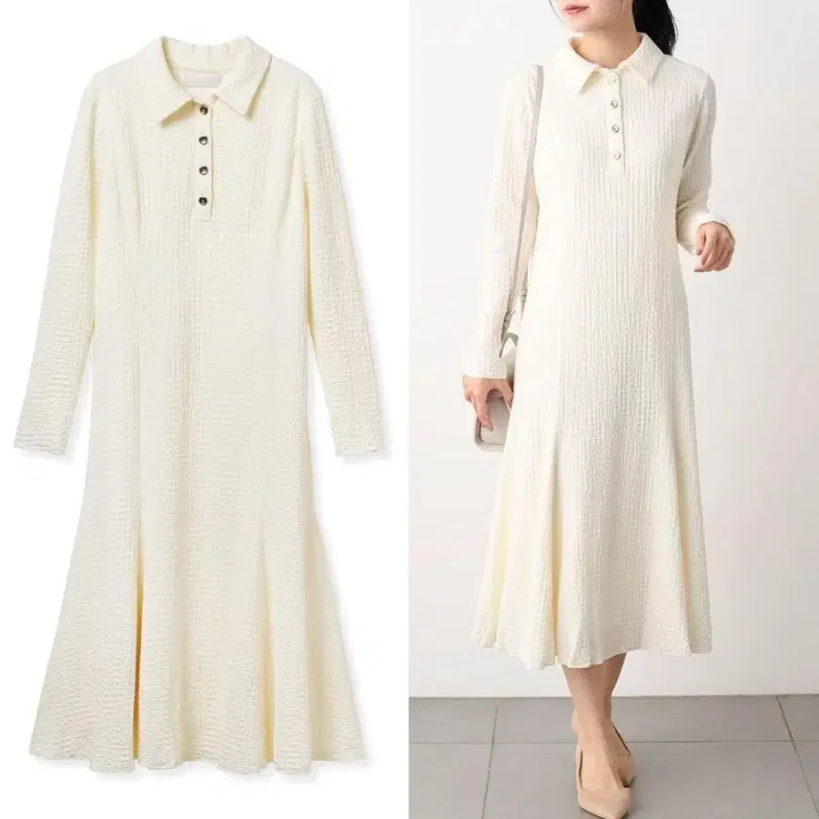 CELFORD 골드 버튼 셔링 티셔츠 원피스