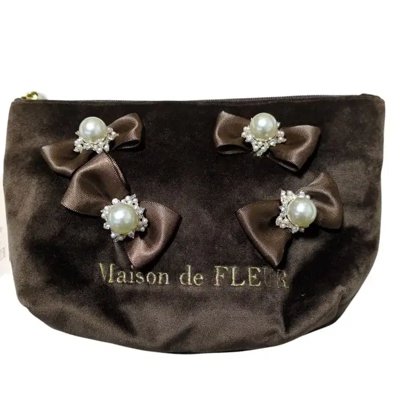 한큐 우메다점 한정판 메종 드 플뢰르 벨로아 소재 펄 리본 파우치