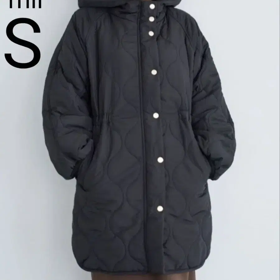 mil 작은 키 브랜드 퀼팅 충전솜 미들 코트 블랙 S 사이즈