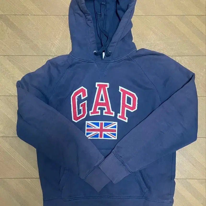 네이비 바디에 빨간색 GAP 빅 로고, 밑단에는 유니언 잭 와펜이 들어간 인기 디자인입니다.