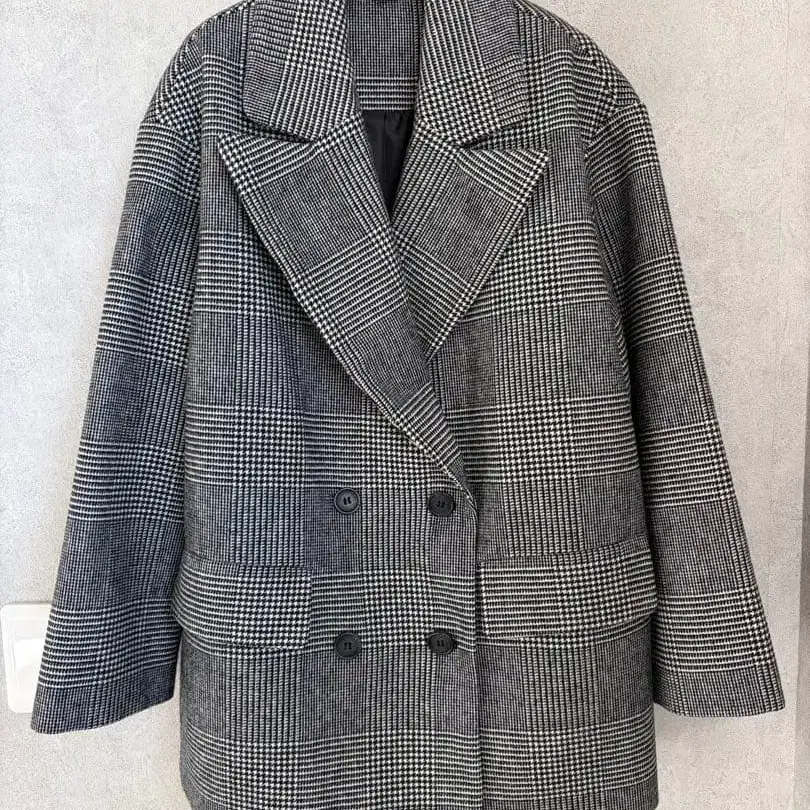 새상품 H&M 글렌체크 더블 브레스트 오버 사이즈 코트