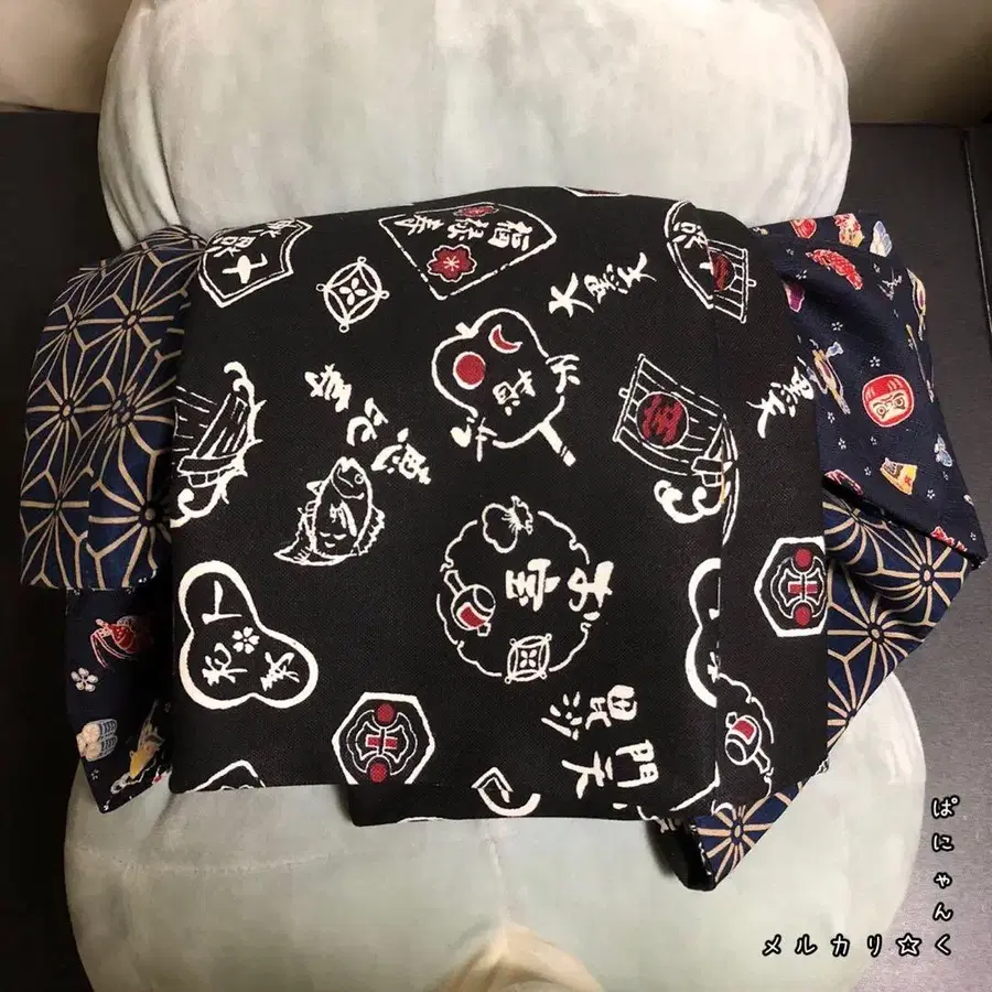 아사노하(麻の葉) 무늬와 달마, 새우 등 행운의 물건 패턴을 조합하여 전통적이면서도 경사스러운 분위기로 완성했습니다(˃̵ᴗ˂̵)