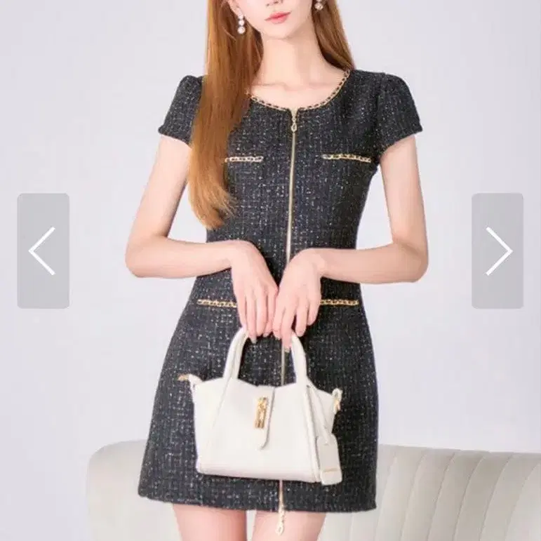 쥬얼스 블랙 트위드 드레스 S 사이즈 앞 지퍼 미사용