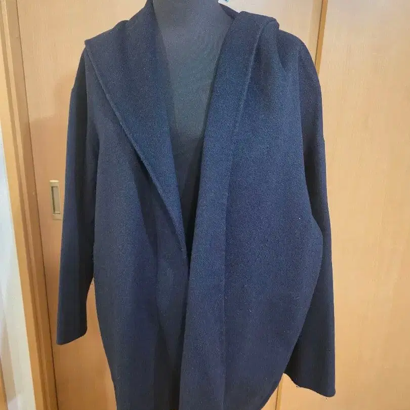 후드 부착 네이비 울 코트